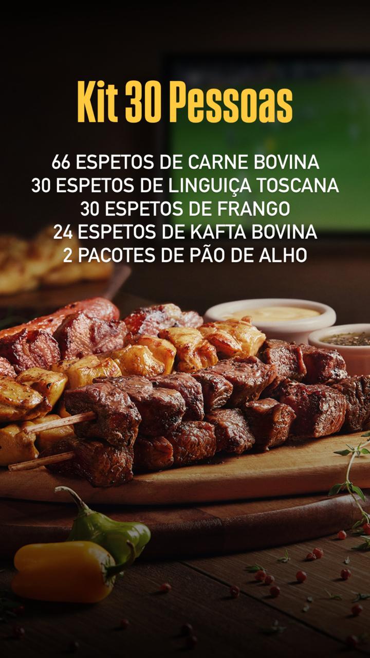Vai fazer aquele churrasco caprichado com a turma toda? Nosso Kit para 30 pessoas é a solução ideal para quem busca praticidade, variedade e muito sabor, sem precisar preparar nada. Todos os espetos são artesanais, feitos com cortes selecionados e temperados na medida certa. É só acender a brasa e aproveitar!
